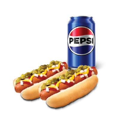 2 Hot Dogs and a 355ml Pepsi Product