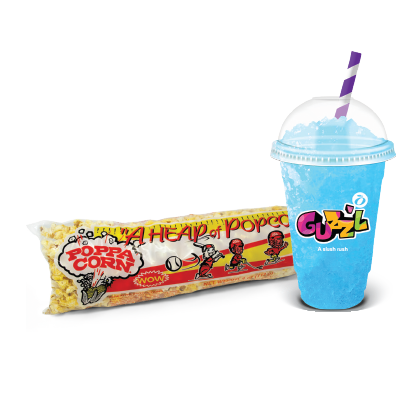 113g Bag of Popcorn and a 16oz GUZZ'L